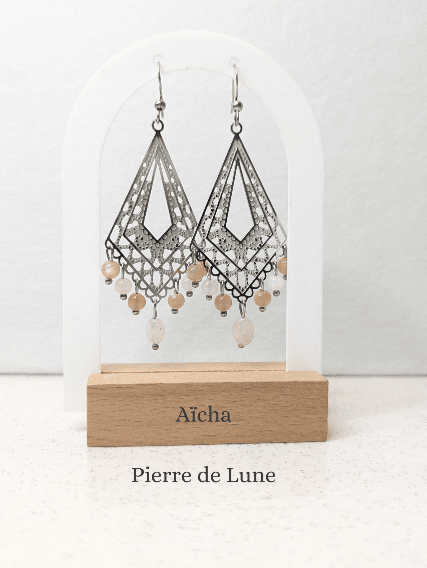 Les boucles d'oreilles Aïcha habilleront vos tenues avec raffinement tout en bénéficiant des vertus des pierres.