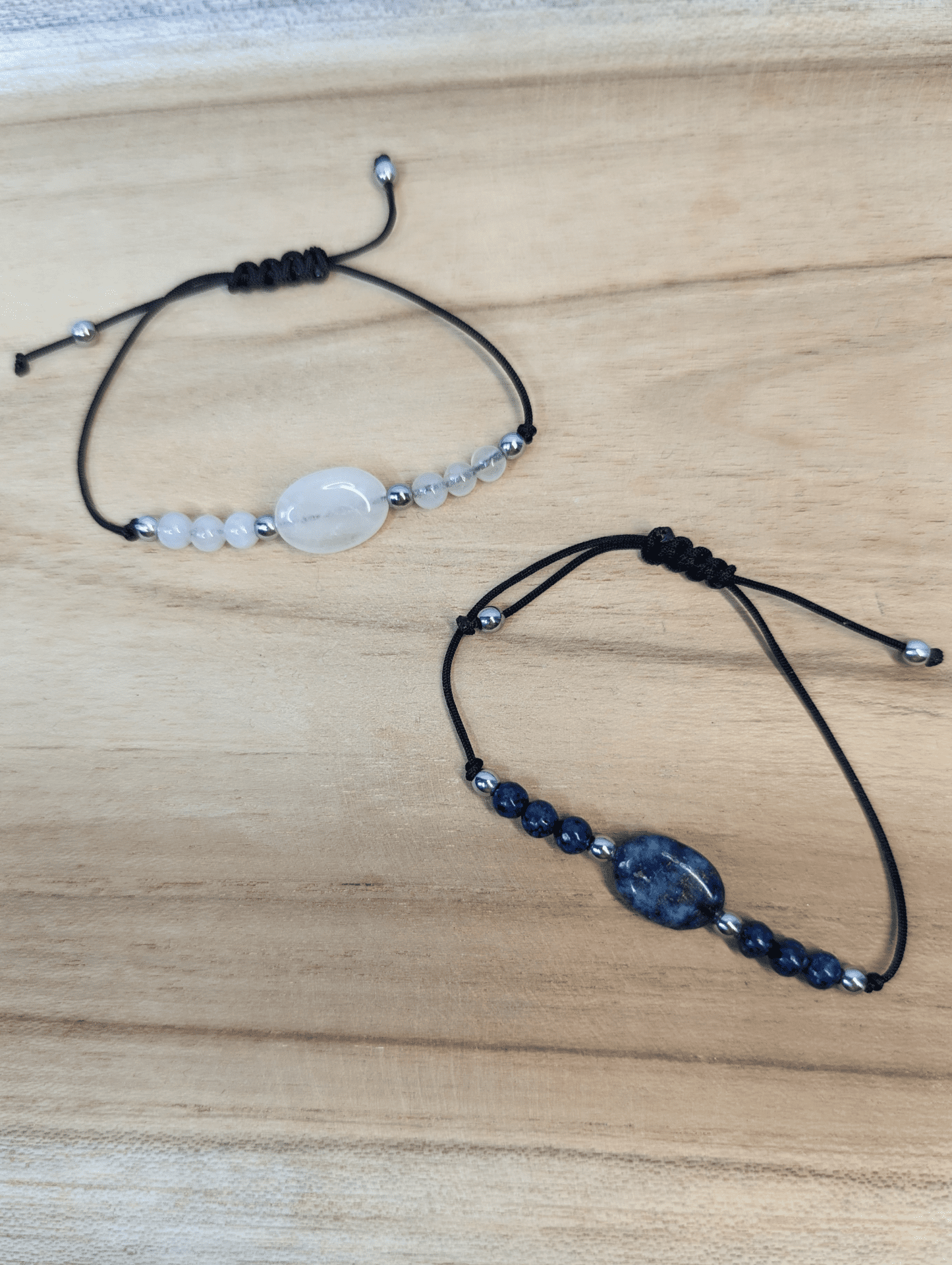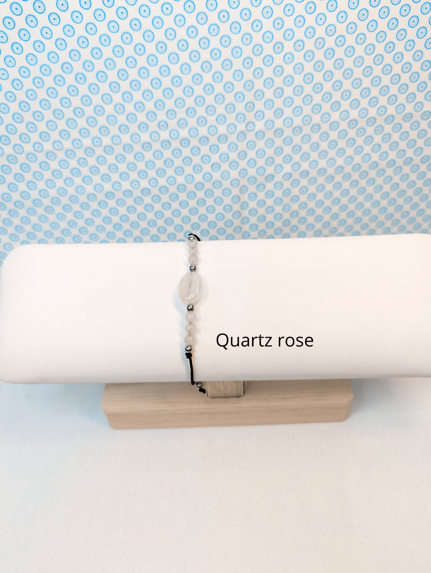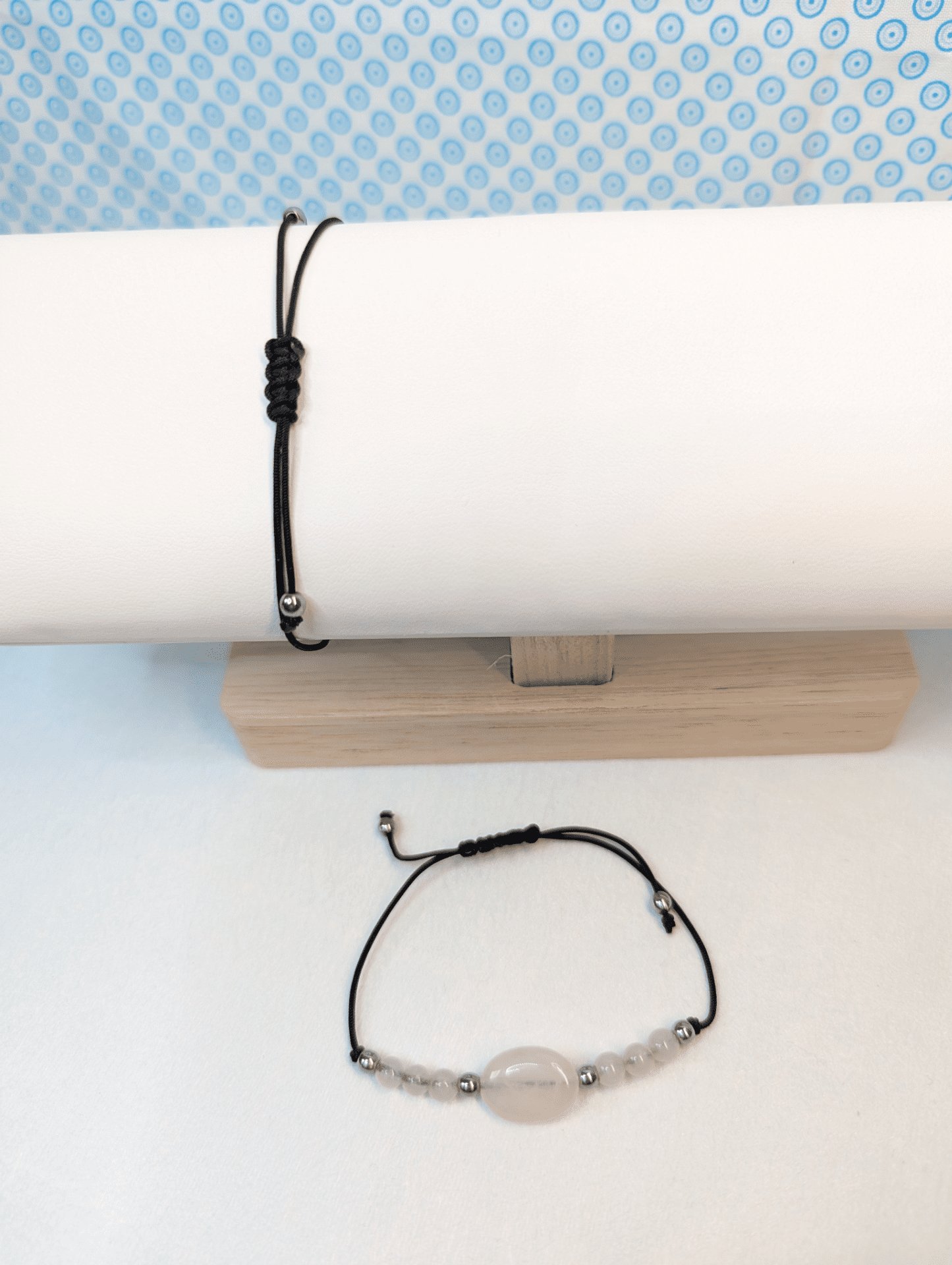 Monté sur un cordon tissé, ce modèle se décline en deux choix de pierres semi-précieuses : quartz rose ou Lapis lazuli. Il est conçu pour vous accompagner dans la vie quotidienne comme dans les grandes occasions.